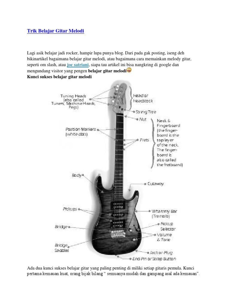 Oke sekian artikel tentang belajar melodi gitar dengan mudah dan cepat. Jika belum anda bisa kunjungi blognya disini tabulasi fingerboard lalu ke blog. Pembelajaran melodi gitar ini diperuntukan lebih ke gitar elektrik tingkat menengah biar gak bingung untuk belajar scale melodi ini setidaknya jika anda ingin mempelajari halaman melodi gitar ini pastikan anda sudah mengetahui tingkat dasar cara baca tabulasi dan fingerboard. Belajar melodi gitar adalah sebuah level lanjutan dalam belajar gitar usai anda menguasai cara bermain gitar dengan baik dan benar serta teknik dasar seperti strumming fingerpicking ataupun teknik belajar gitar lainnya. Dalam sebuah band gitaris merupakan salah satu posisi yang paling banyak menarik perhatian penontonnya selain vokalis dan seluruh personil yang ada di dalam band tersebut. Seorang pemain gitar yang biasa dikenal dengan istilah gitaris atau guitarist.
