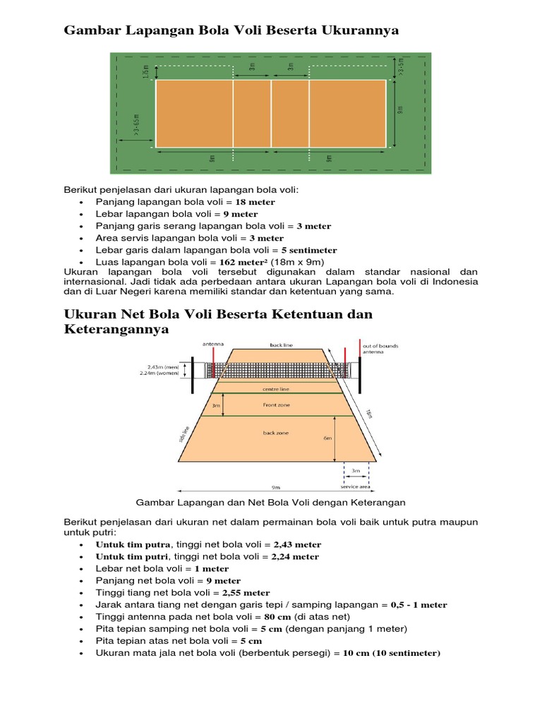243 meter tinggi net bola voli untuk putri. Garis batas serang untuk pemain belakang memiliki jarak 3 meter dari garis tengah. Yang mana pembahasannya meliputi pengertian cara bermain peraturan teknik dasar contoh gambar lapangan dan berita tentang dunia olah raga secara lengkap. Ukuran tiang dan net bola voli adalah sebagai berikut. Gambar dan ukuran lapangan bola voli lengkap sahabat sekalian pada kesempatan kali ini pojok ilmu akan share artikel mengenai gambar beserta ukuran bola voli secara standar dan lengkapdibutuhkan sebuah tempat atau lapangan untuk bermain.